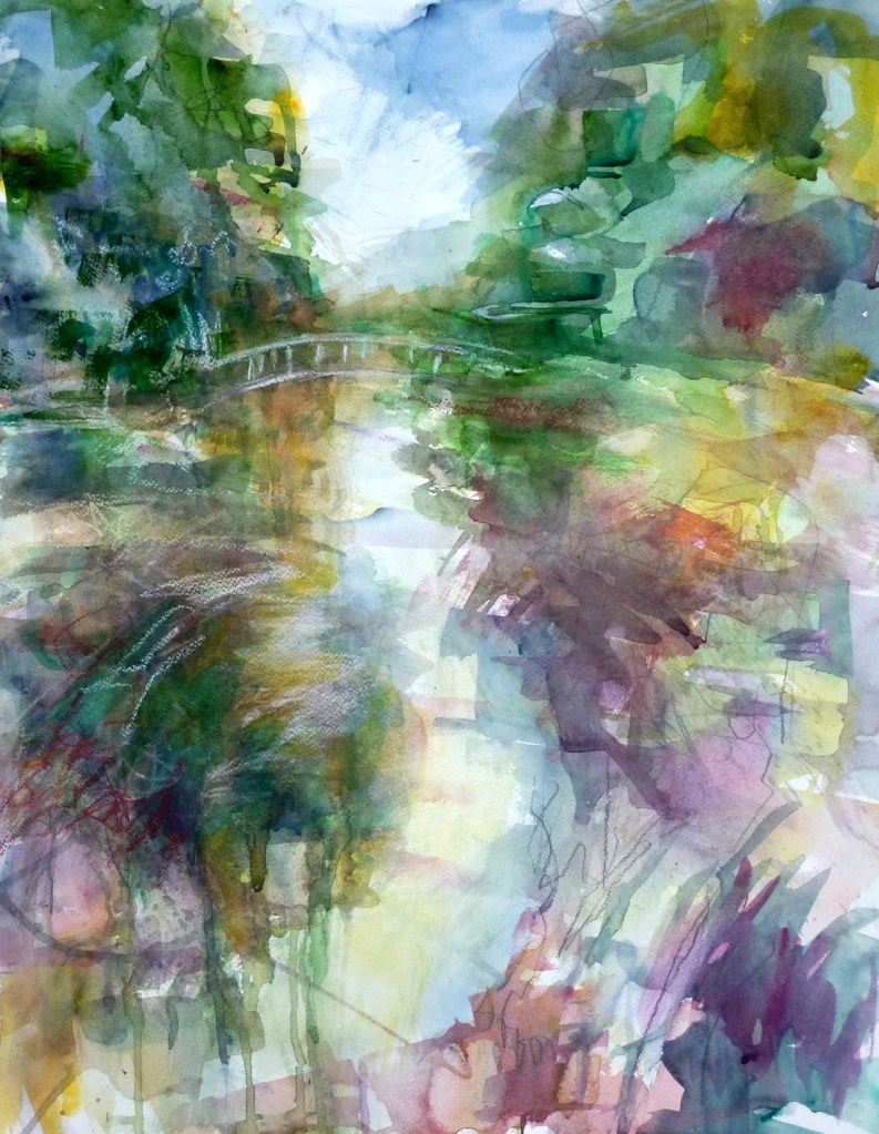 Turner has been my inspiration since I first went to the National Gallery as a child, especially his late works in oil, how Venice in his hands dissolves into light and mist. My current exploration is the interplay of light and shadow, energy and movement, of which he is the master. Venice inspired my two abstract takes on the same ideas. His seascapes, full of the strength and danger of water, inspired my “Storm at Sea”. His watercolours inspired “Dreaming of Summer”, an homage to his earlier work such as “Tintern Abbey”. Thinking about his late works in particular will keep me pushing for excellence for the rest of my life.